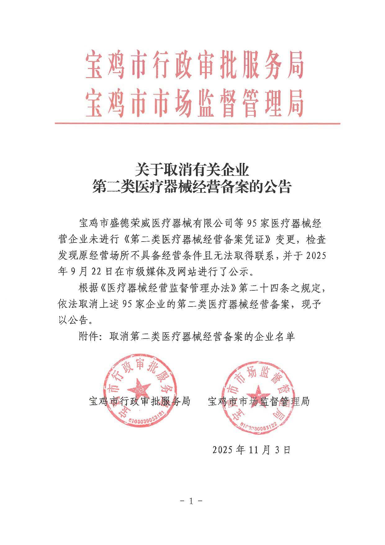 关于取消有关企业第二类医疗器械经营备案的公告