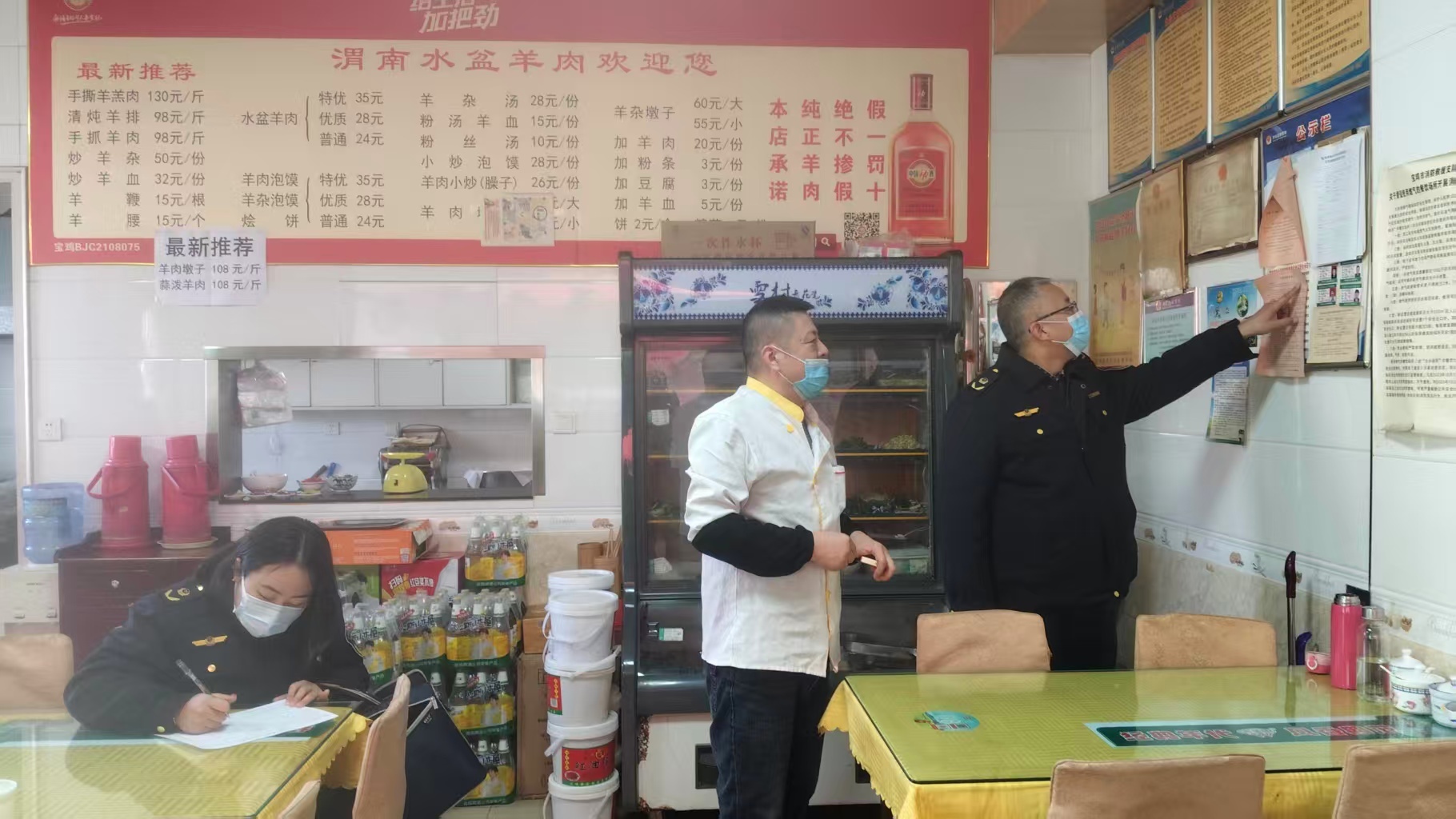 市、县两级市场监管部门强化协同联动,全面排查小餐饮行业食品安全风险隐患,扎实推进小餐饮行业规范化建设,切实保障食品安全形势稳定向好。如金台区东风路市场监管所执法人员对宝铁市场内小餐饮经营单位实施专项检查,发现部分经营户存在后厨垃圾桶未加盖、地面油污堆积、墙壁霉变等卫生问题。执法人员现场下达责令整改通知书,明确整改要求,并就卫生清洁工作进行规范指导,确保各项卫生标准落实到位。同时,还严格核查食品原材料的进货渠道、查验记录以及索证索票制度执行情况,确保经营户严把食品原料质量安全关。
