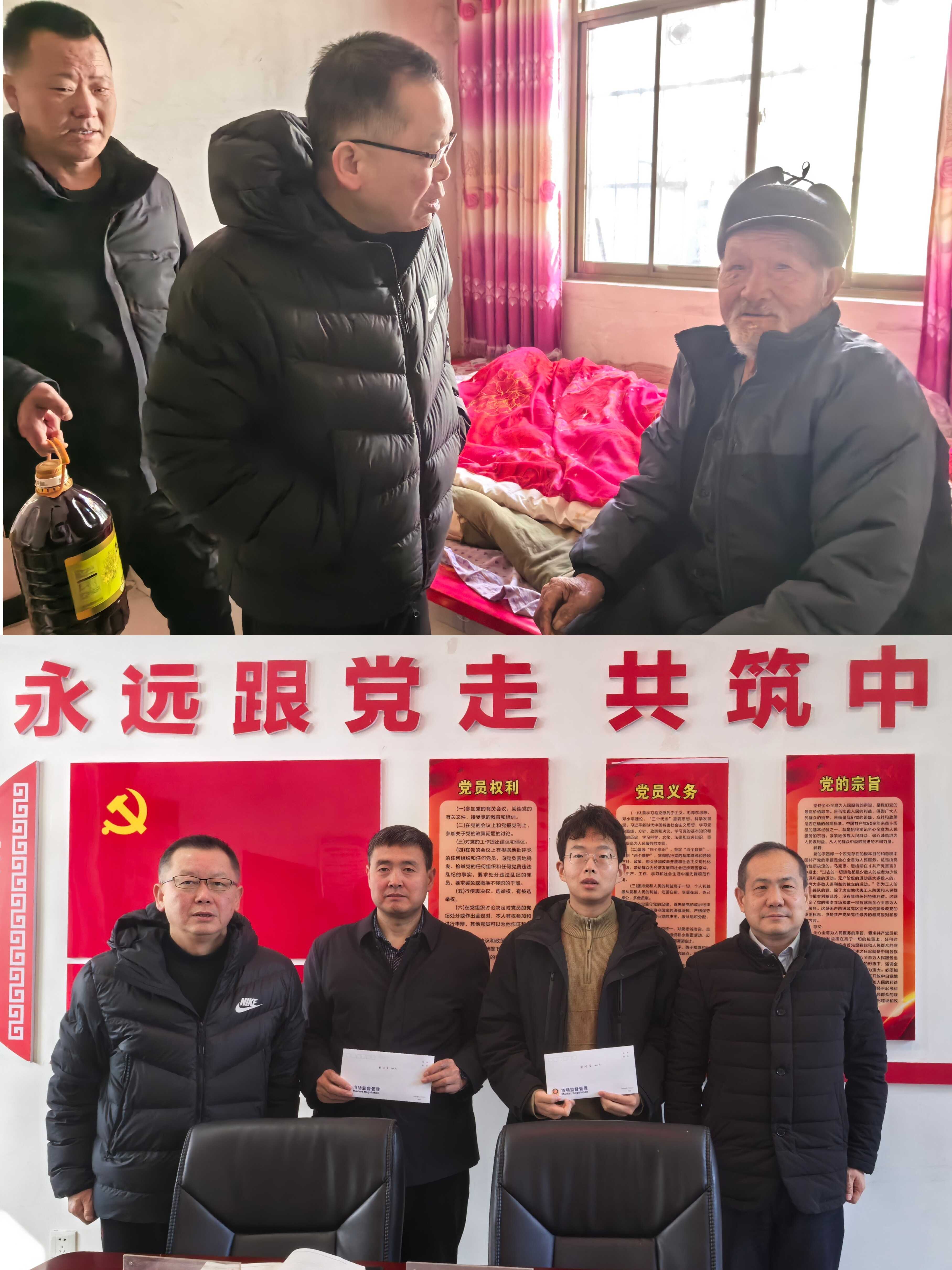 2月10日,市市场监管局副局长崔效辉带队赴陈仓区拓石镇杨家川村、金台区金河镇永利村开展慰问,实地察看驻村干部工作生活环境,听取驻村帮扶工作汇报,勉励驻村干部扎根基层、恪尽职守、攻坚克难,全力推动帮扶村发展、助力群众增收。要求驻村干部继续保持优良作风,坚守帮扶一线,聚焦群众急难愁盼问题,精准发力、真抓实干,切实把帮扶工作落到实处、取得实效。同时,慰问组深入10户困难群众家中,与群众面对面交流,详细了解生产生活状况、收入来源和实际困难,送上慰问物资和节日祝福。