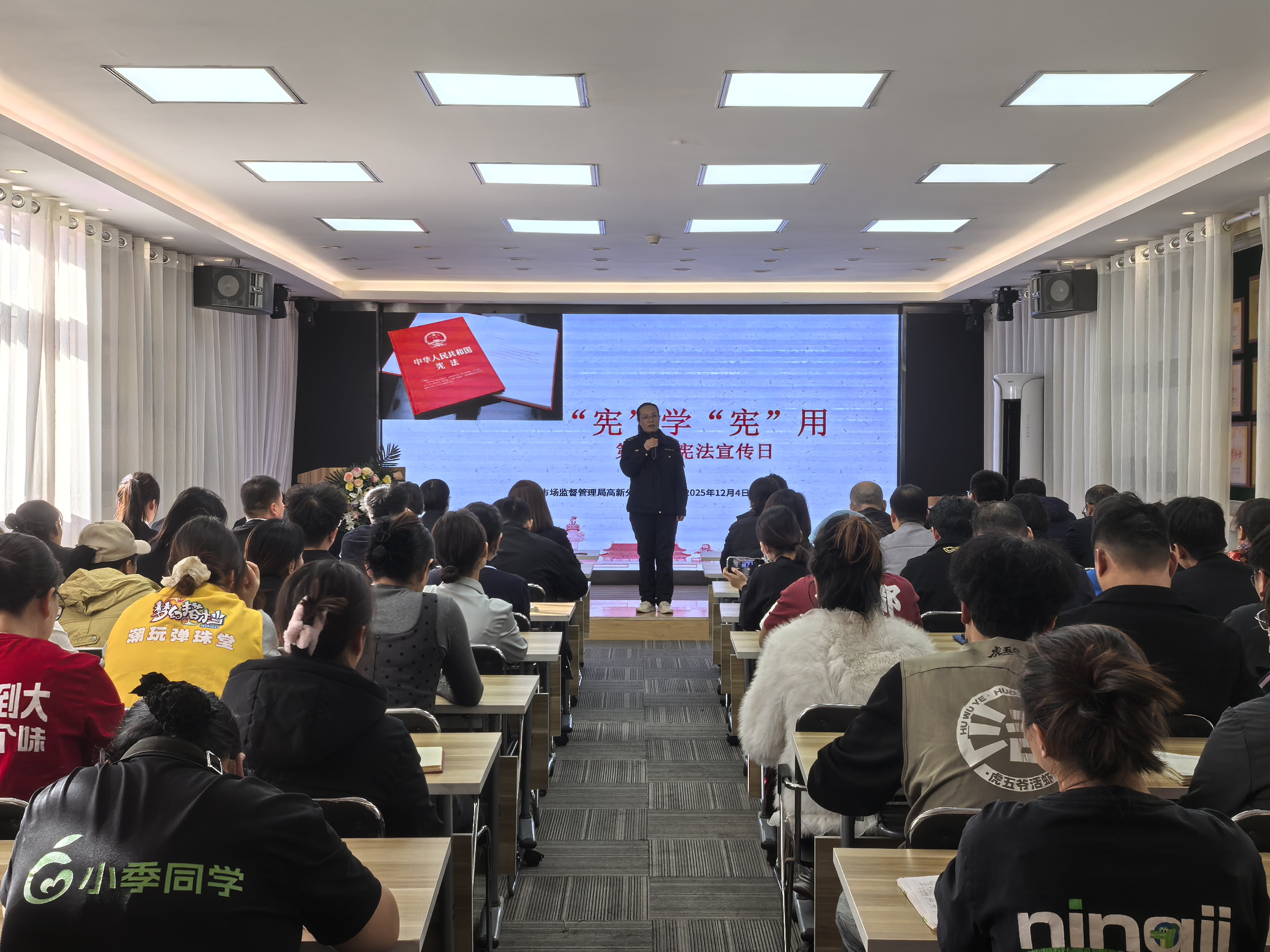 12月4日,宝鸡市市场监督管理局高新分局在宝鸡天下汇商场组织开展“弘扬宪法精神 护航企业发展”12·4国家宪法日普法宣传活动。商场管理方、从业人员及经营户代表参加活动。
