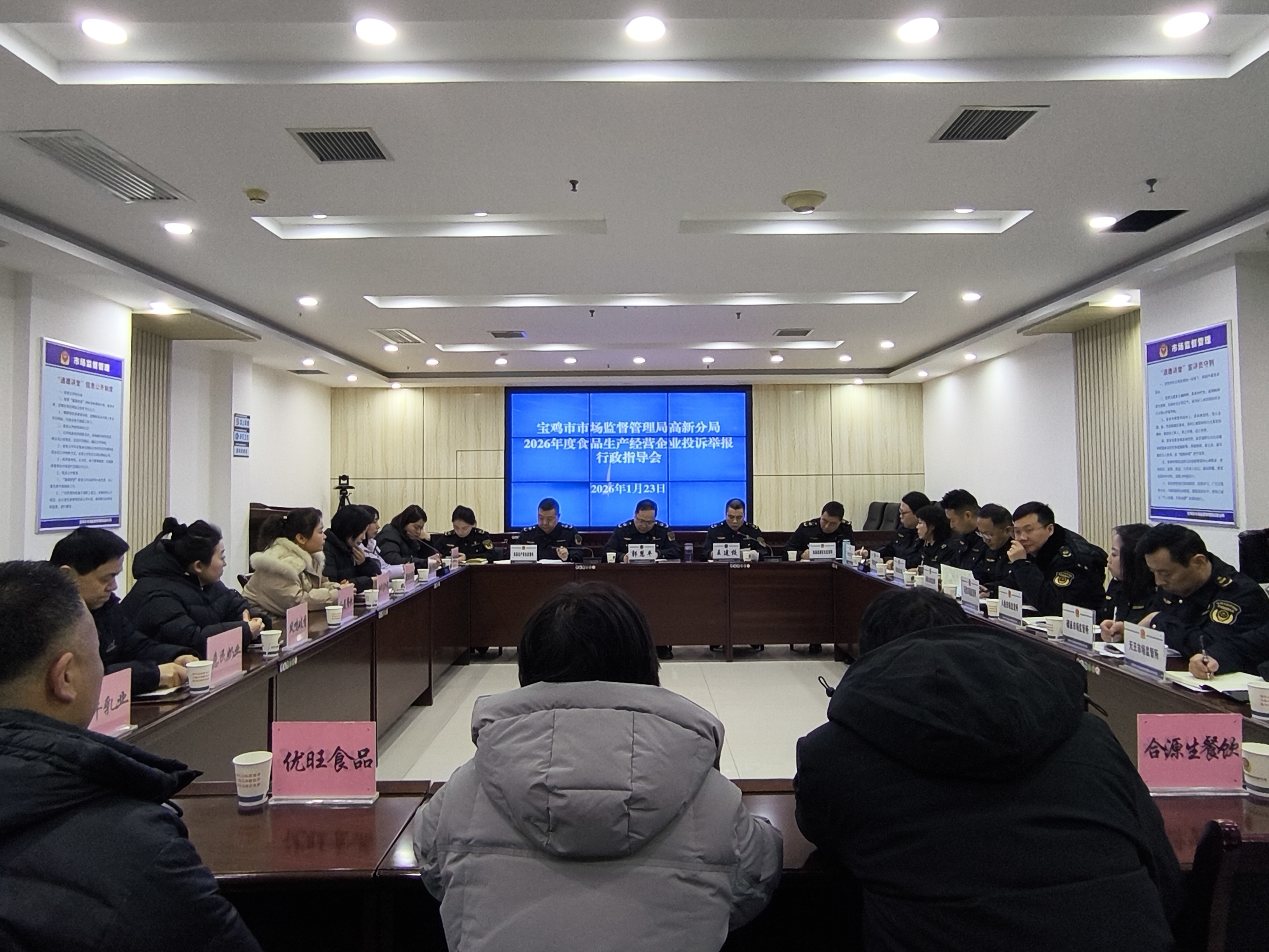 1月23日,宝鸡市市场监督管理局高新分局召开食品生产经营企业投诉举报行政指导会。分局食品业务科室负责人、各市场监管所投诉举报工作人员,以及高新区11家食品生产企业食品安全负责人参加会议。