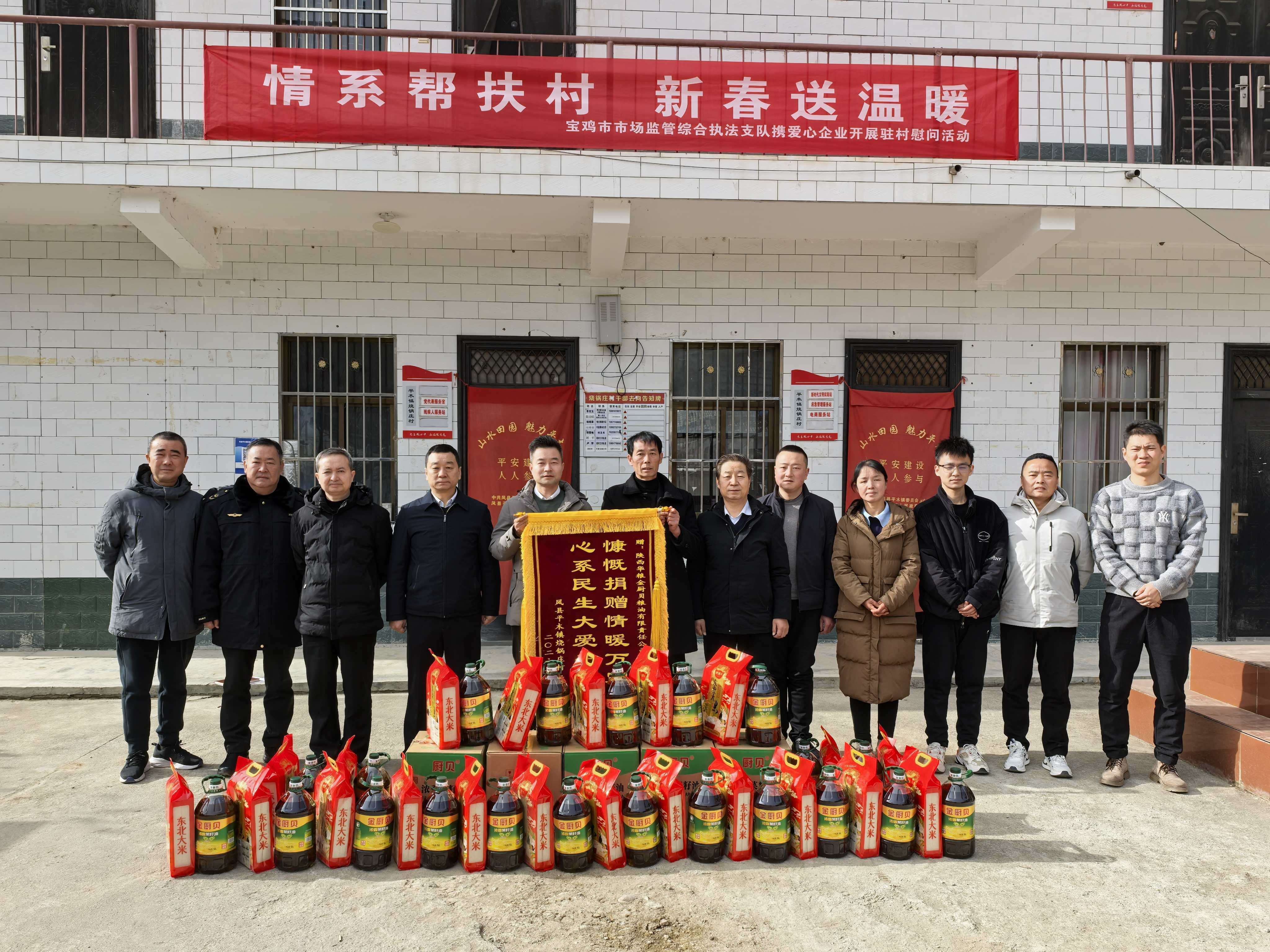 近日,宝鸡市市场监管综合执法支队联合爱心企业,前往帮扶村凤县平木镇烧锅庄村开展新春帮扶慰问活动,以实际行动传递组织温暖,夯实帮扶责任,助力乡村振兴。