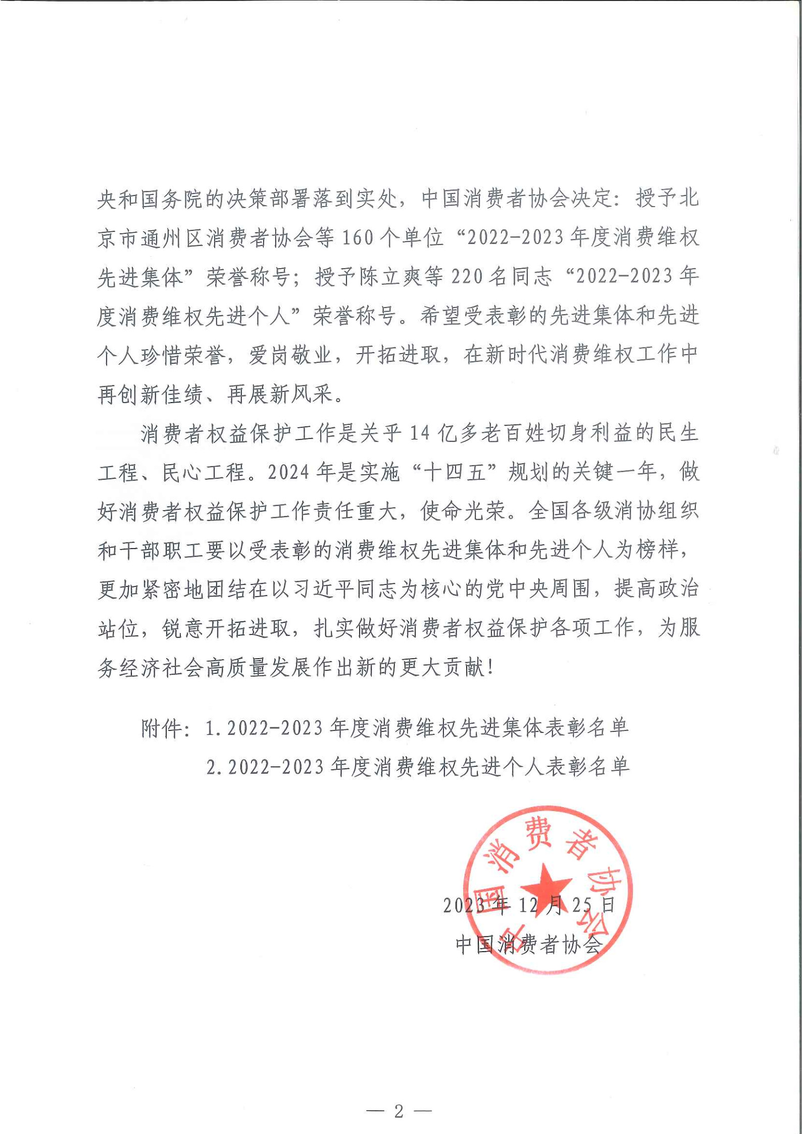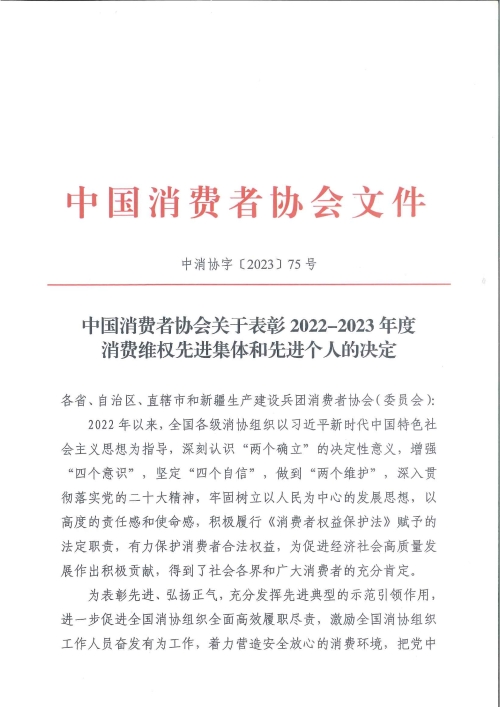 12月25日,中国消费者协会下发《关于表彰2022—2023年度消费维权先进集体和先进个人的决定》,宝鸡市消费者权益保护委员会荣获2022-2023年度消费维权先进集体荣誉称号,这是宝鸡市继荣获2020-2021年度消费维权先进集体之后,又一次被中消协通报表彰,也是陕西省获此荣誉的三个消保委组织之一。