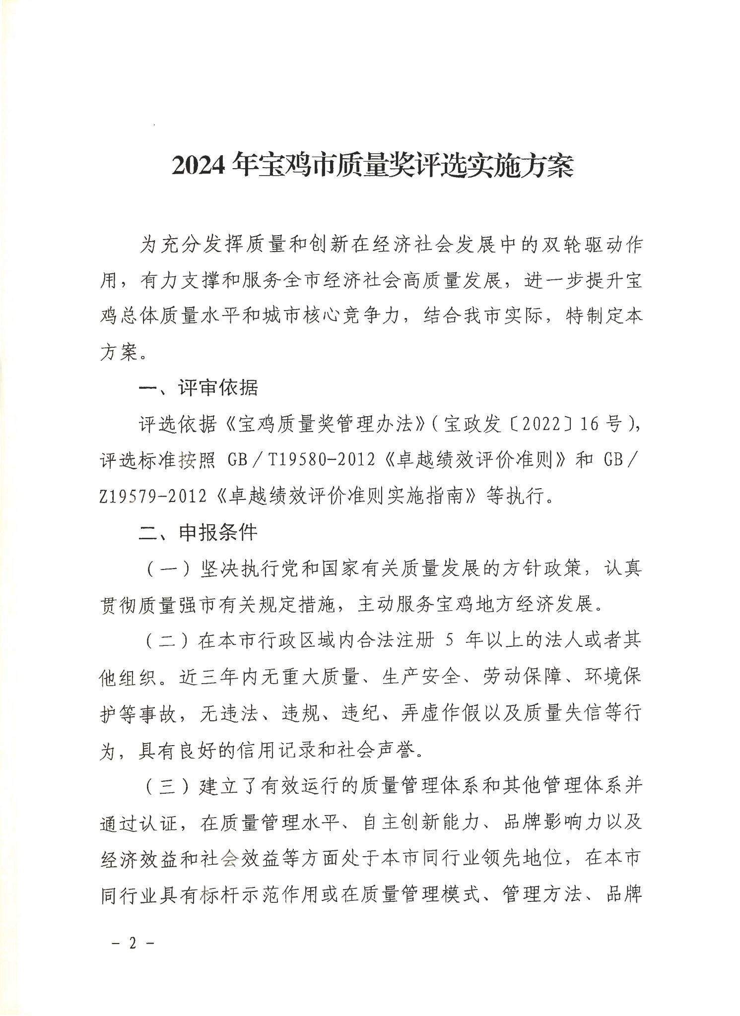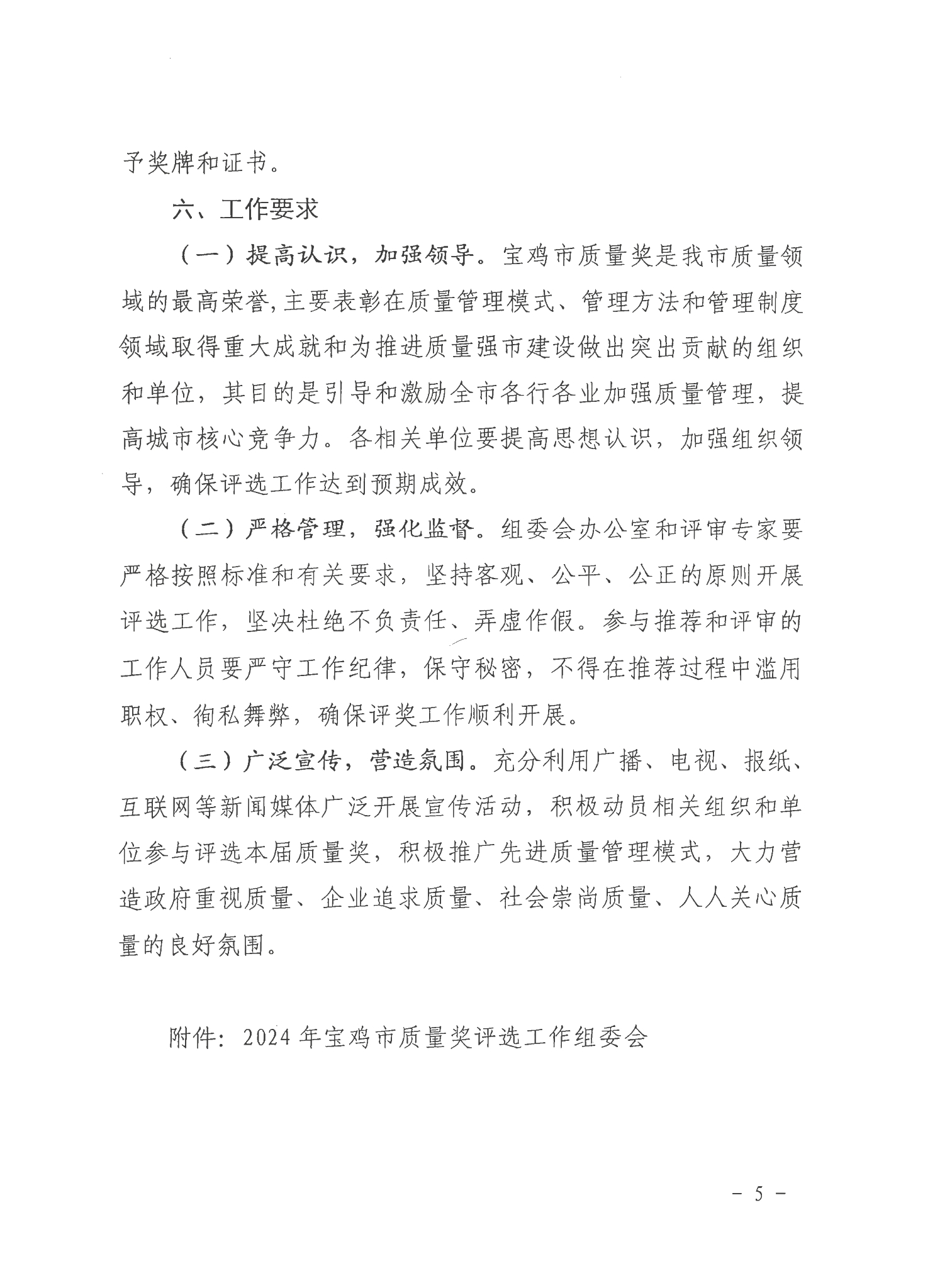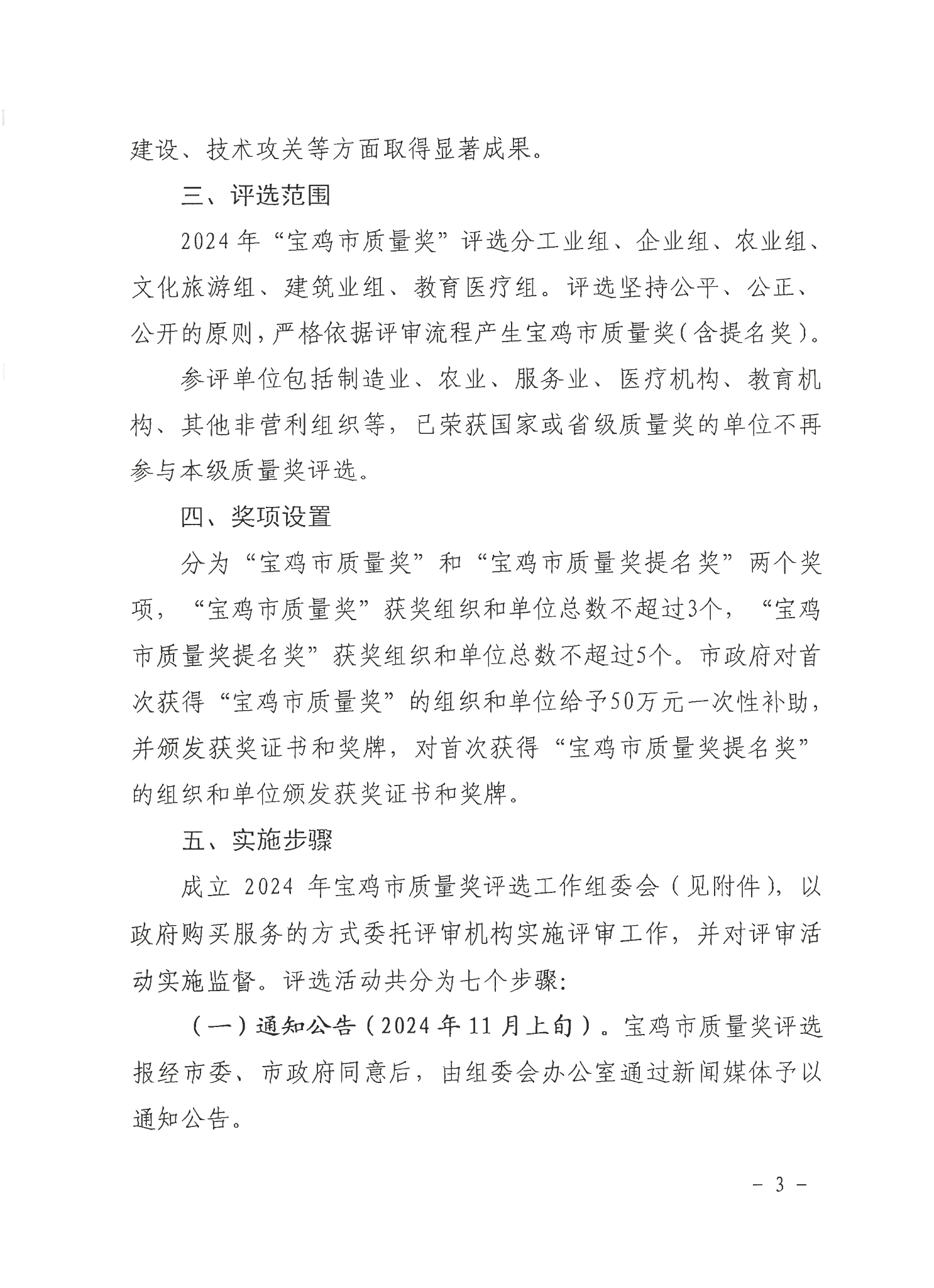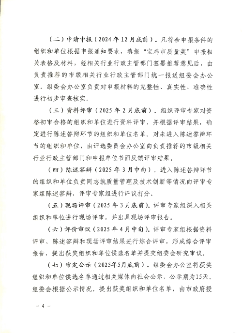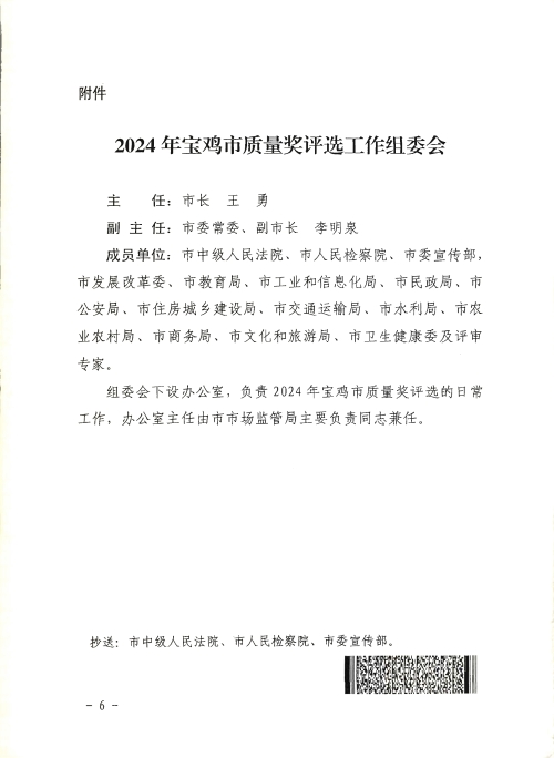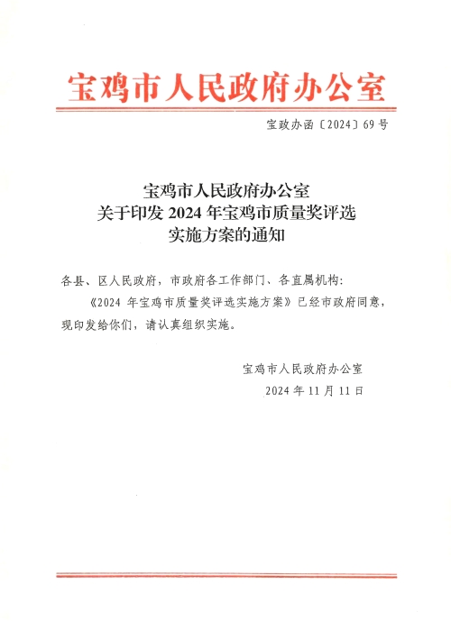 宝鸡市人民政府办公室关于印发2024年宝鸡市质量奖评选实施方案的通知