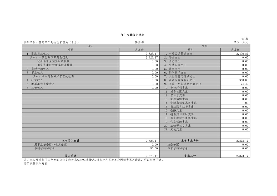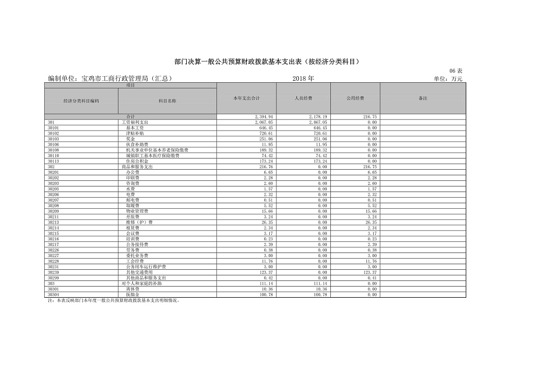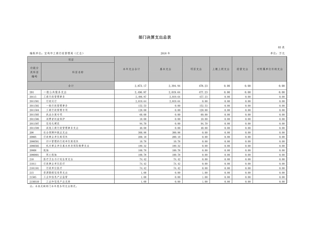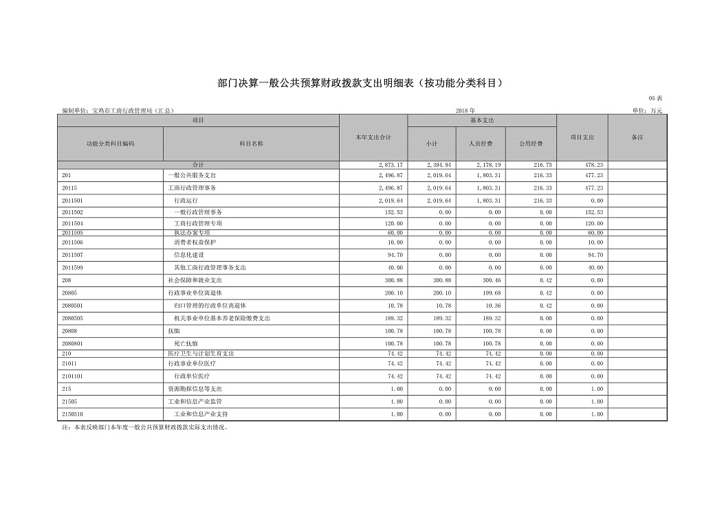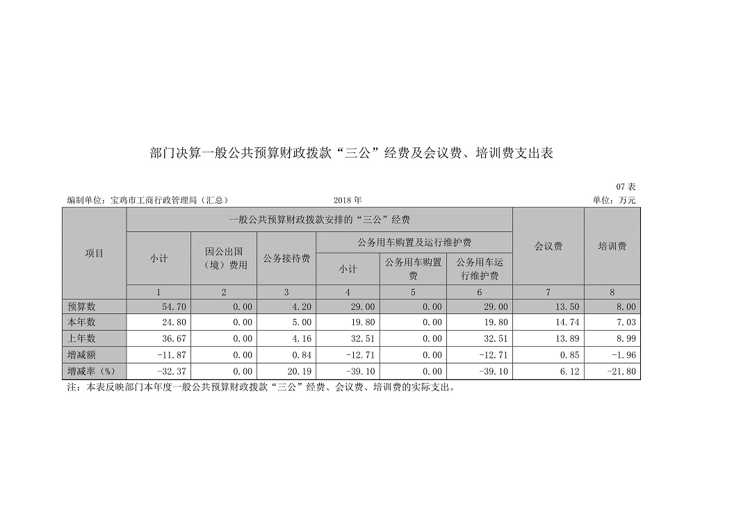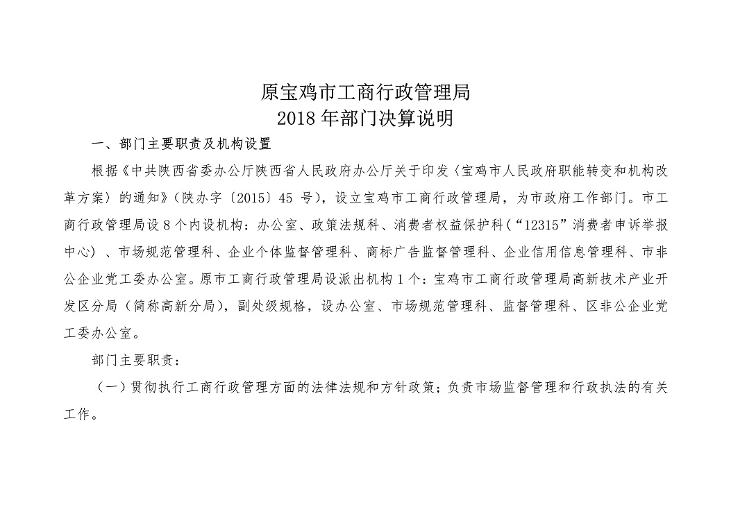 原宝鸡市工商行政管理局2018年部门预算说明