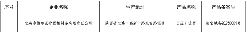 依据医疗器械相关法律法规,按照陕西省药监局《关于加强第一类医疗器械备案管理的通知》(陕药监办函〔2023〕366号)要求,现将宝鸡市2025年第一季度新办理的产品备案信息予以公示。