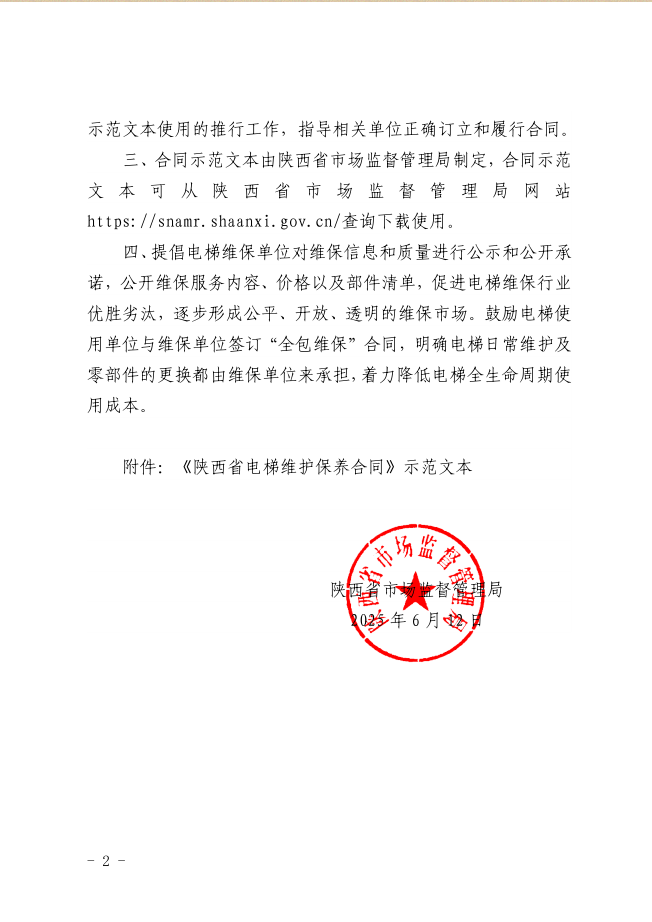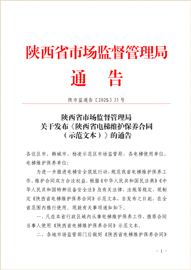 关于发布《陕西省电梯维护保养合同(示范文本)》的通告