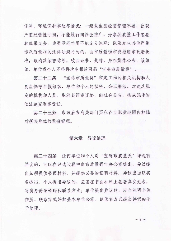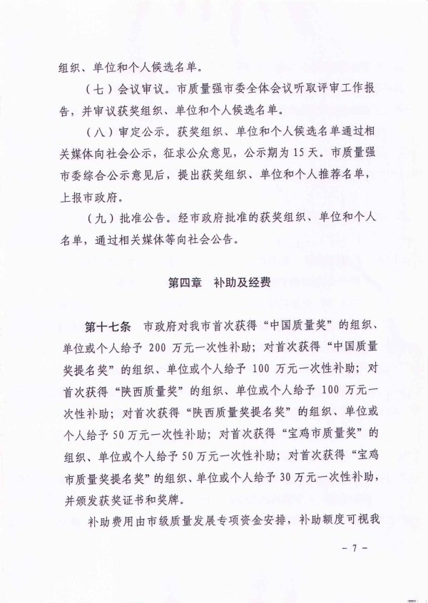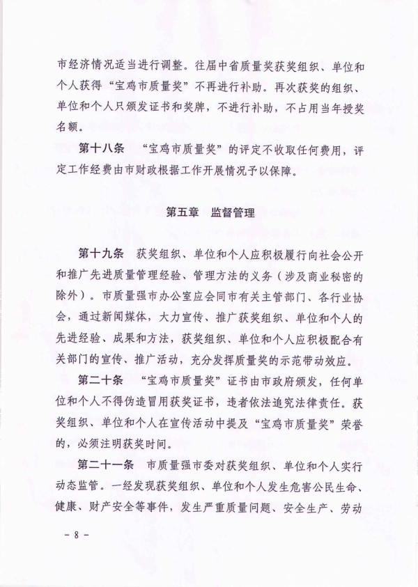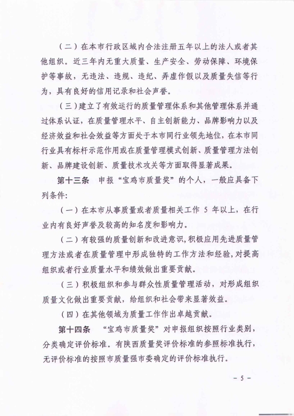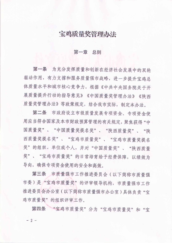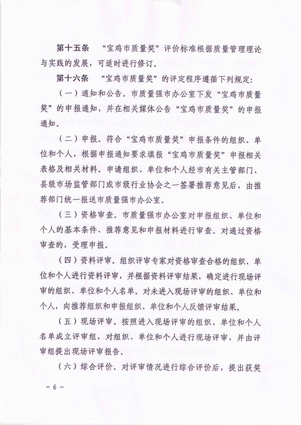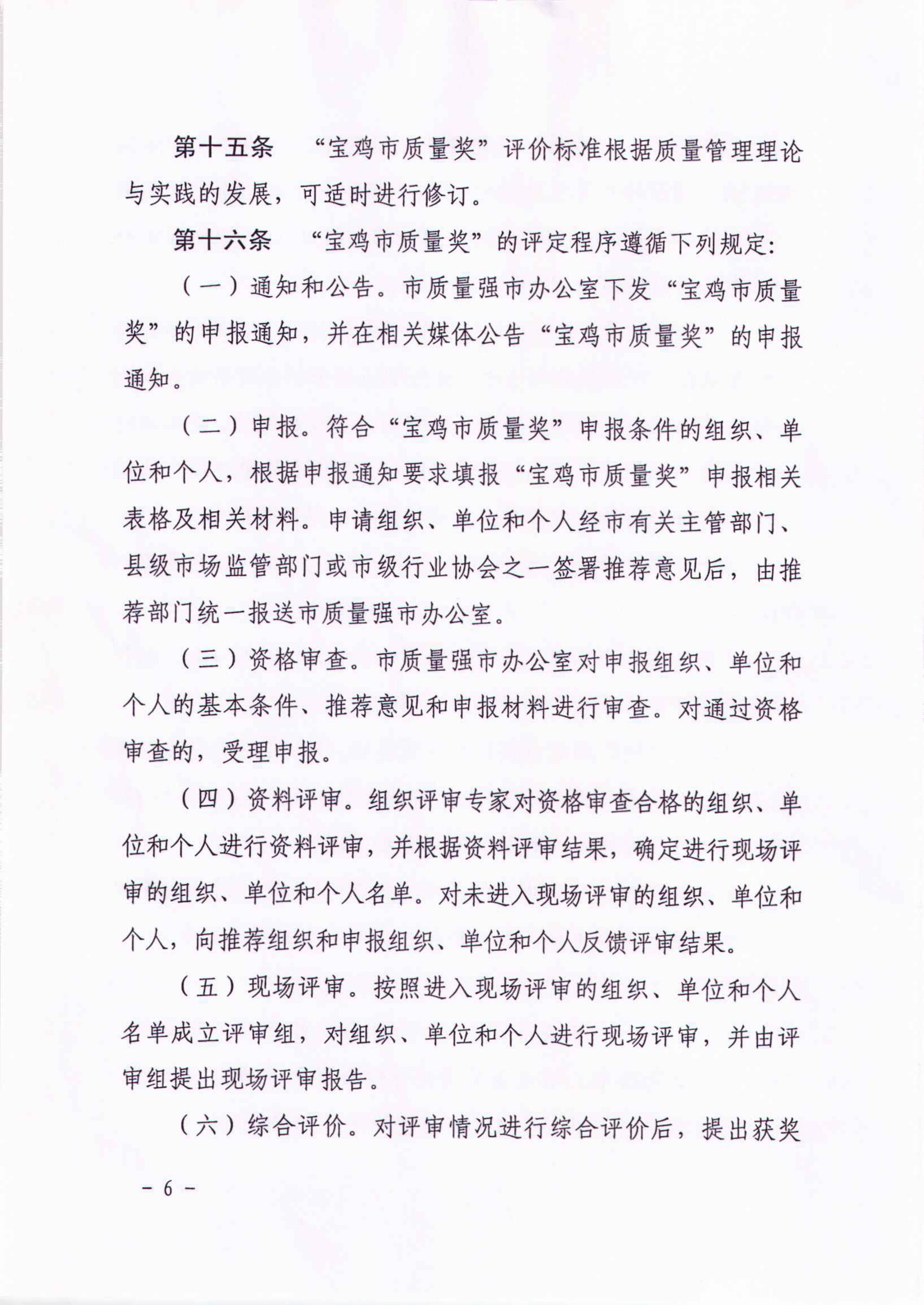 宝鸡市人民政府关于印发《宝鸡质量奖管理办法》的通知