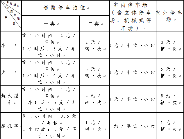 2.以上道路停车泊位收费标准为当日8时至20时的收费标准,其余时间免费。